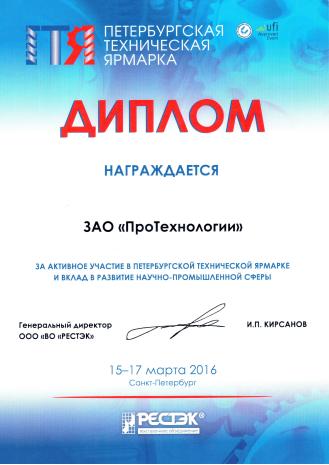 В 2015 году компания «ПроТехнологии» продолжила развивать производство в Санкт-Петербурге: имеющиеся мощности перевезены на новый производственный участок более 500 м2, значительно увеличен парк оборудования, доукомплектован штат квалифицированных специалистов.