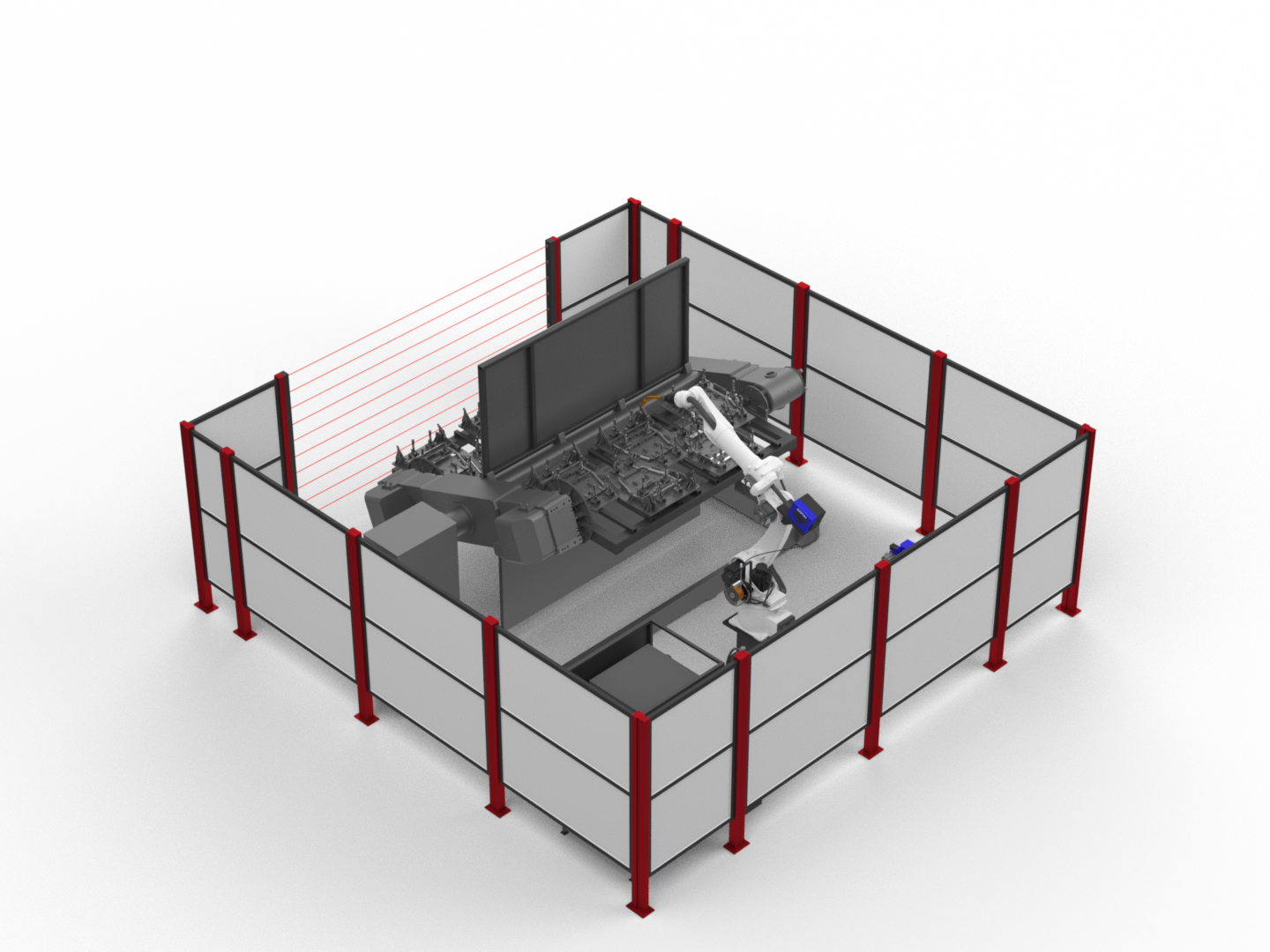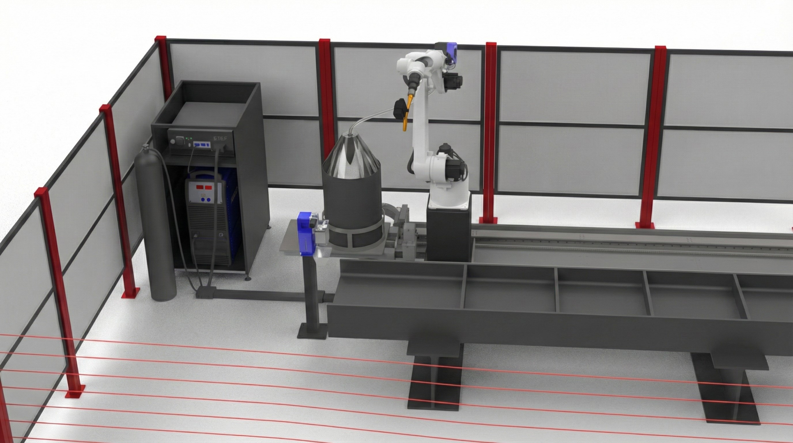 РТК: робот + два двухосевых позиционера. Пока оператор устанавливает следующую заготовку, робот варит на соседней позиции без простоев.